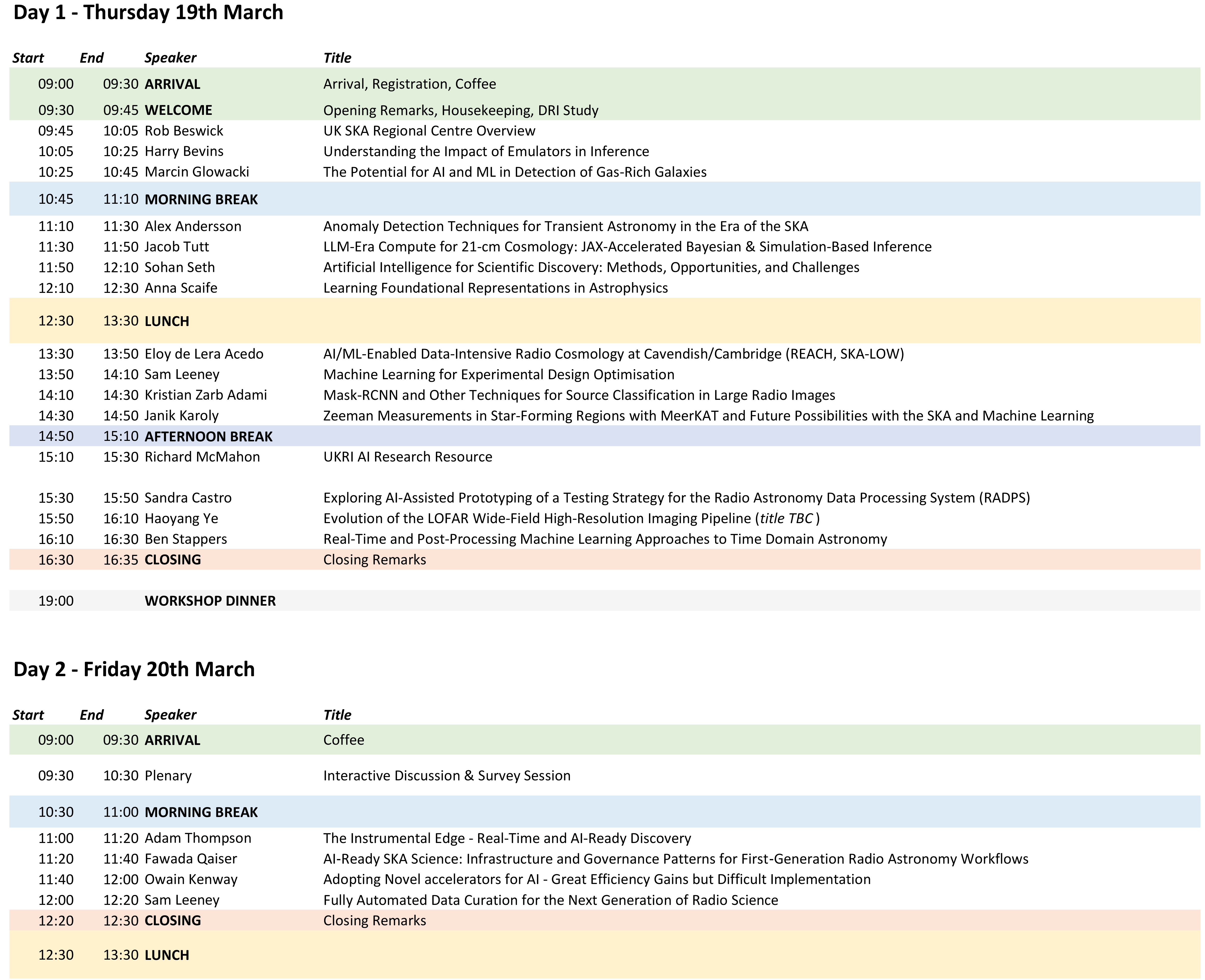 To prepare for the workshop, please take a moment to fill in this pre-workshop survey on Machine Learning and AI in Radio Astronomy